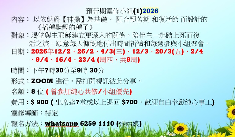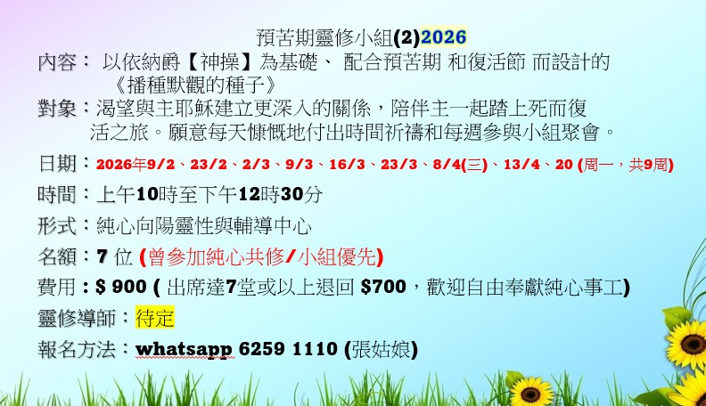 名額:8 位 ( 曾參加純心共修/小組優先)